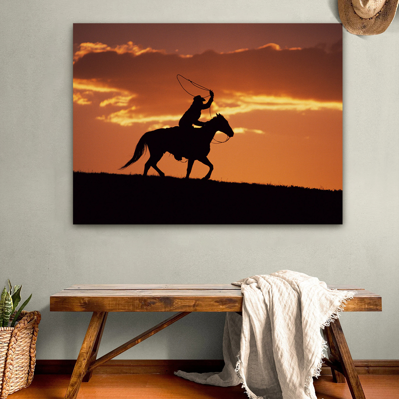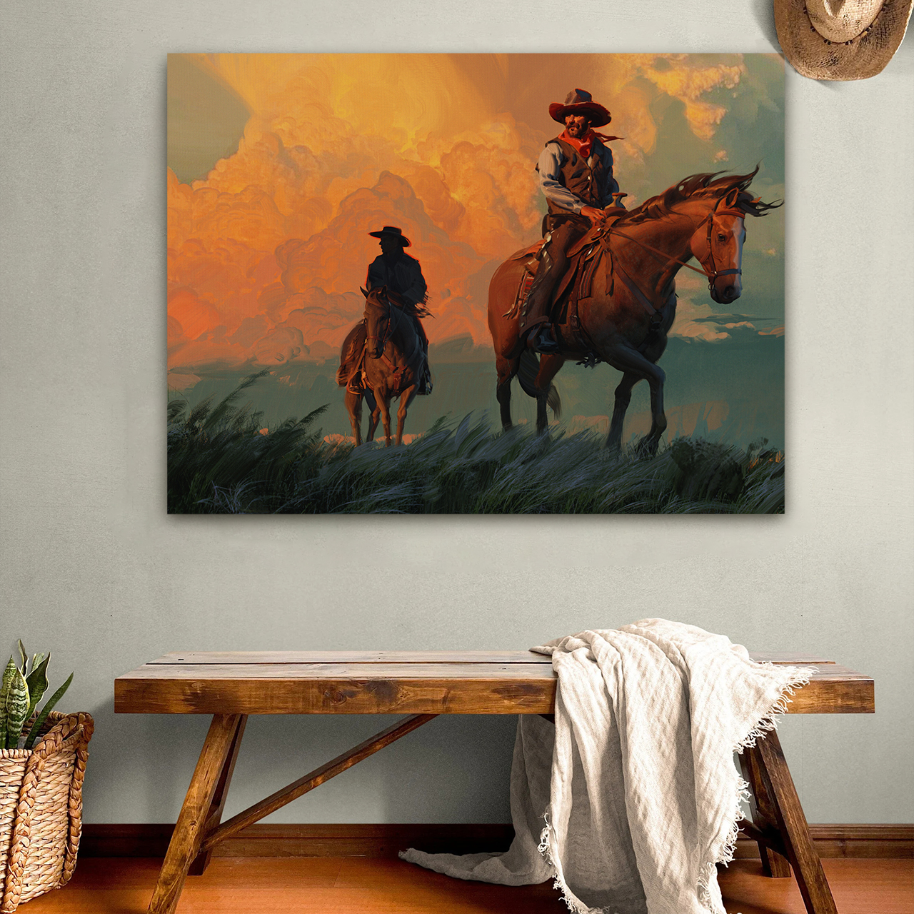 Cowboys at Dusk and Sunset Canvas Wall Art