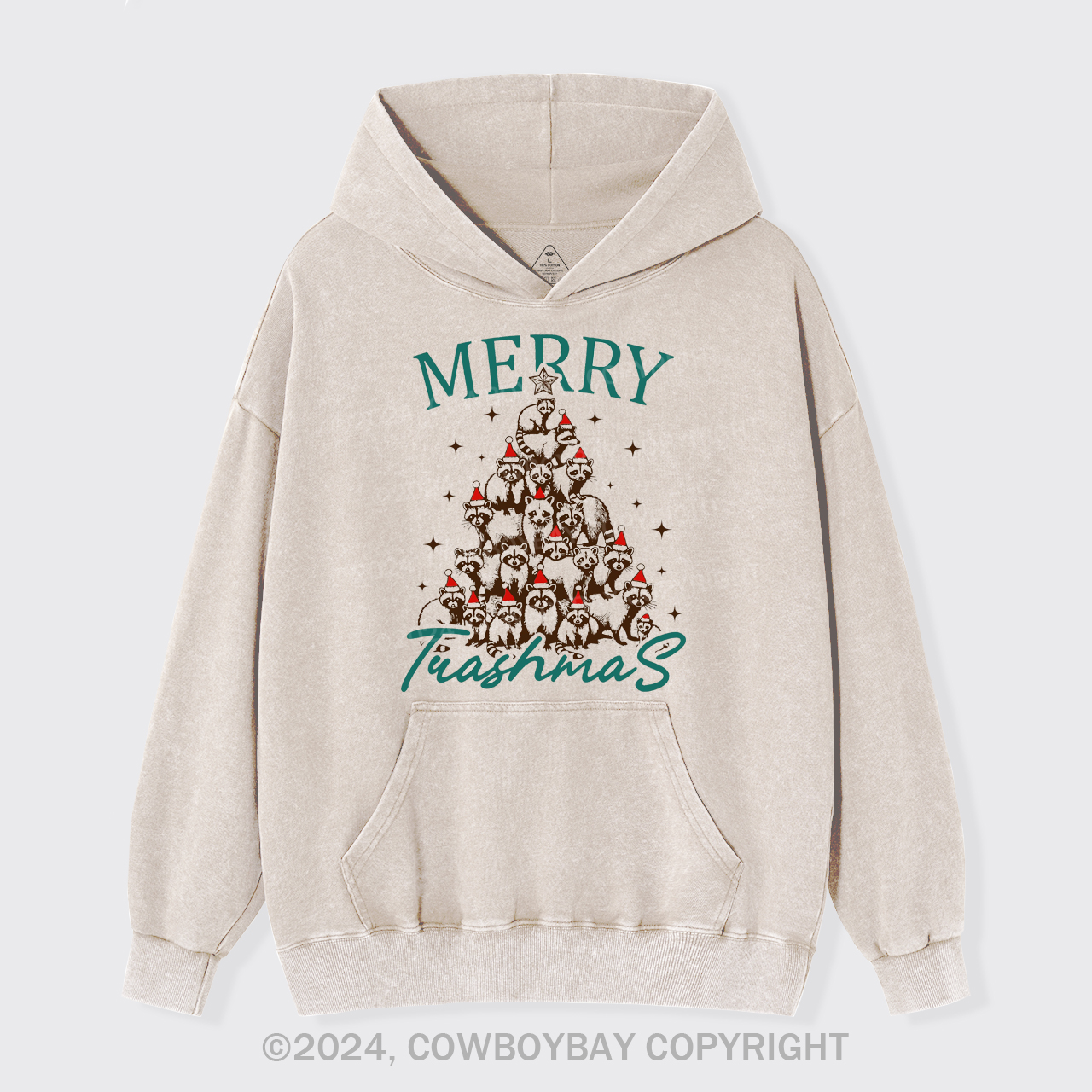 Christmas Feral Raccoon Tree Garment-Dye Hoodies