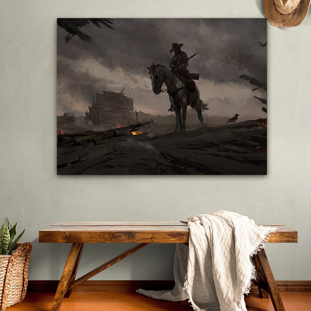 Cowboys in the Flames of War Canvas Wall Art
