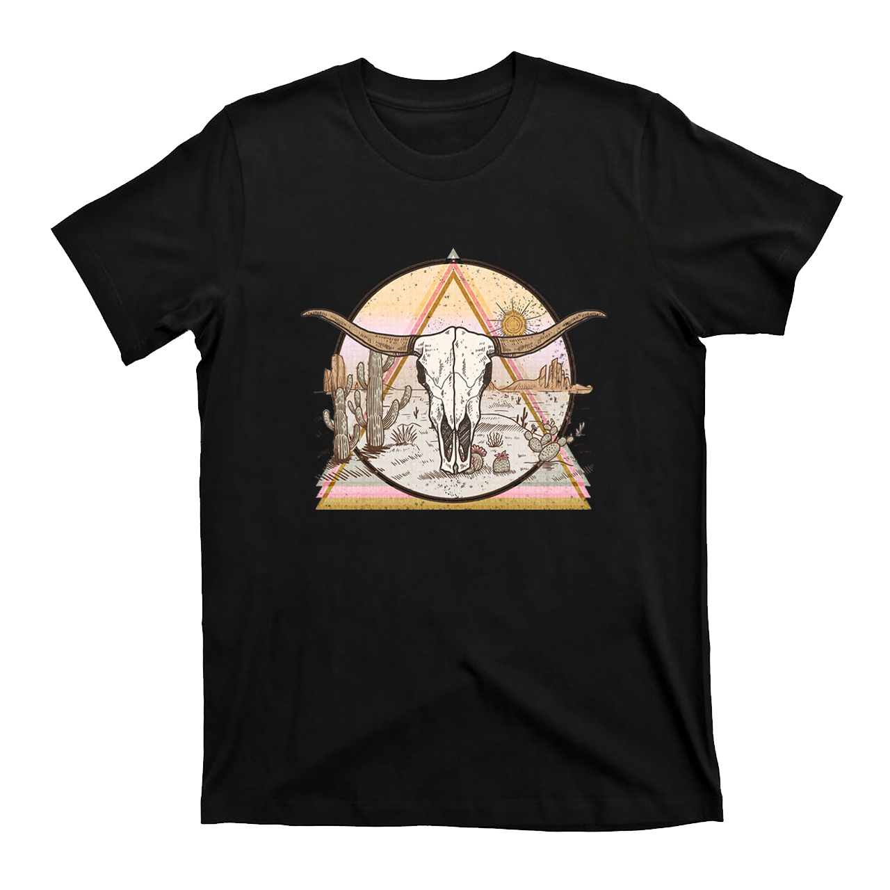 Mysterious Triangular Cow Skull Desert T-Shirts