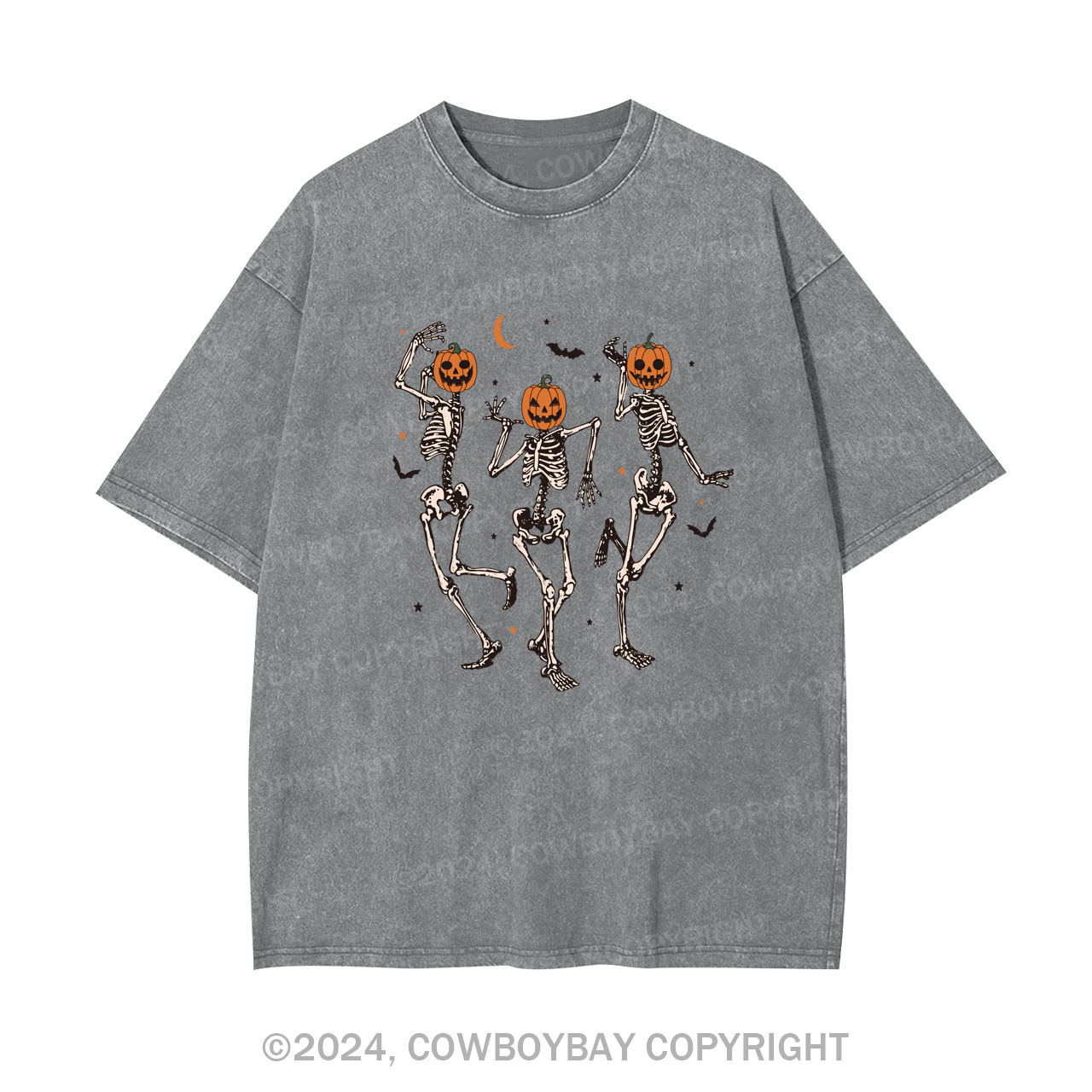 Dancing Skeleton Pumpkin Face Garment-dye Tees