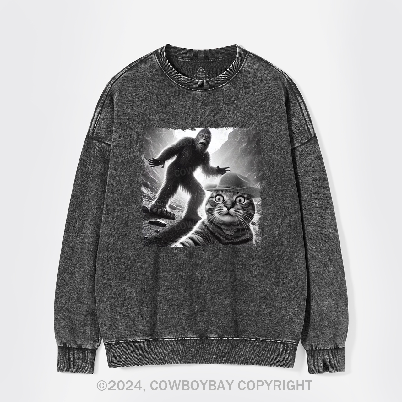 Scared Cat Selfie With Bigfoot Retro 90s Washed Sweatshirts