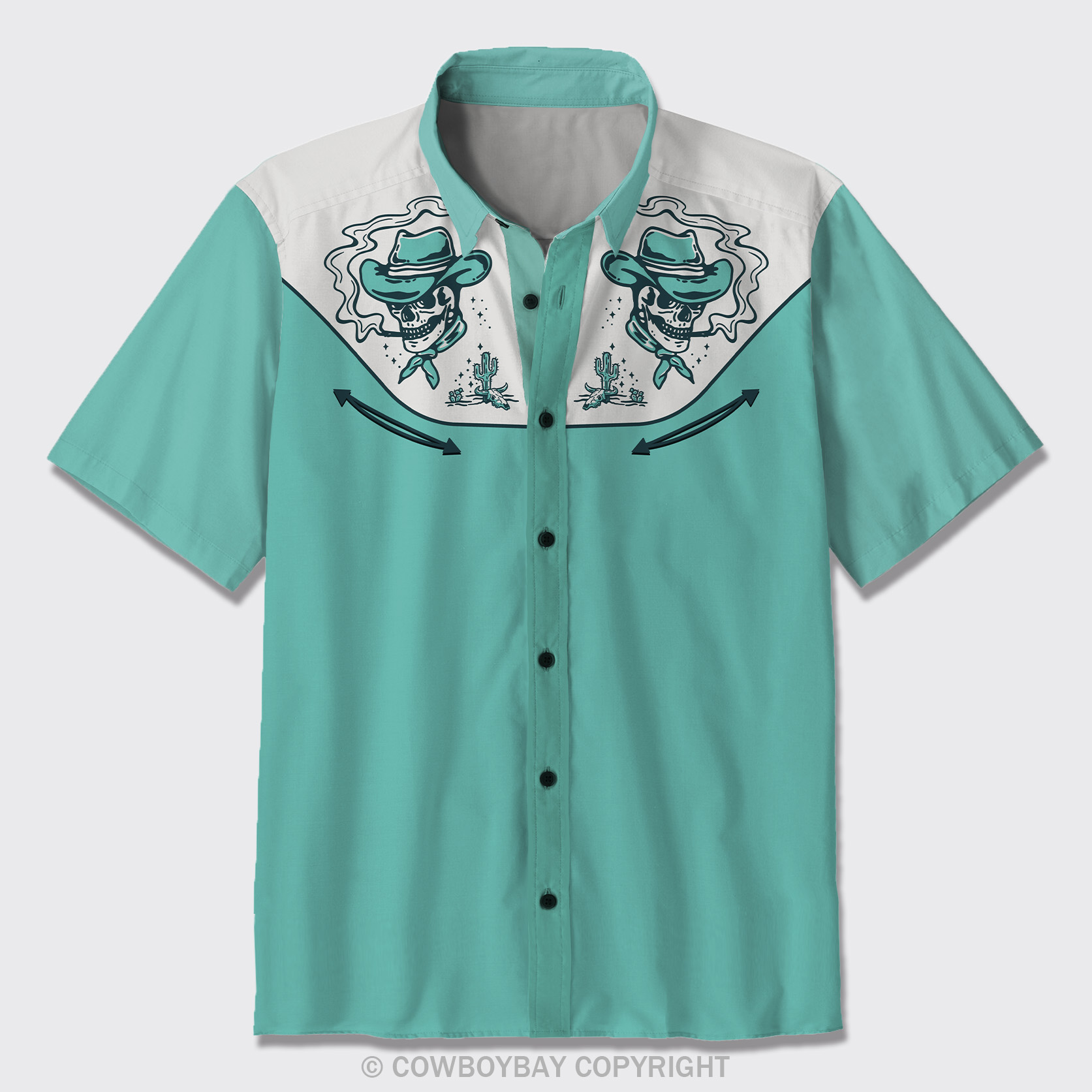 Skeleton Cowboy Smoking Button Up Shirts_4
