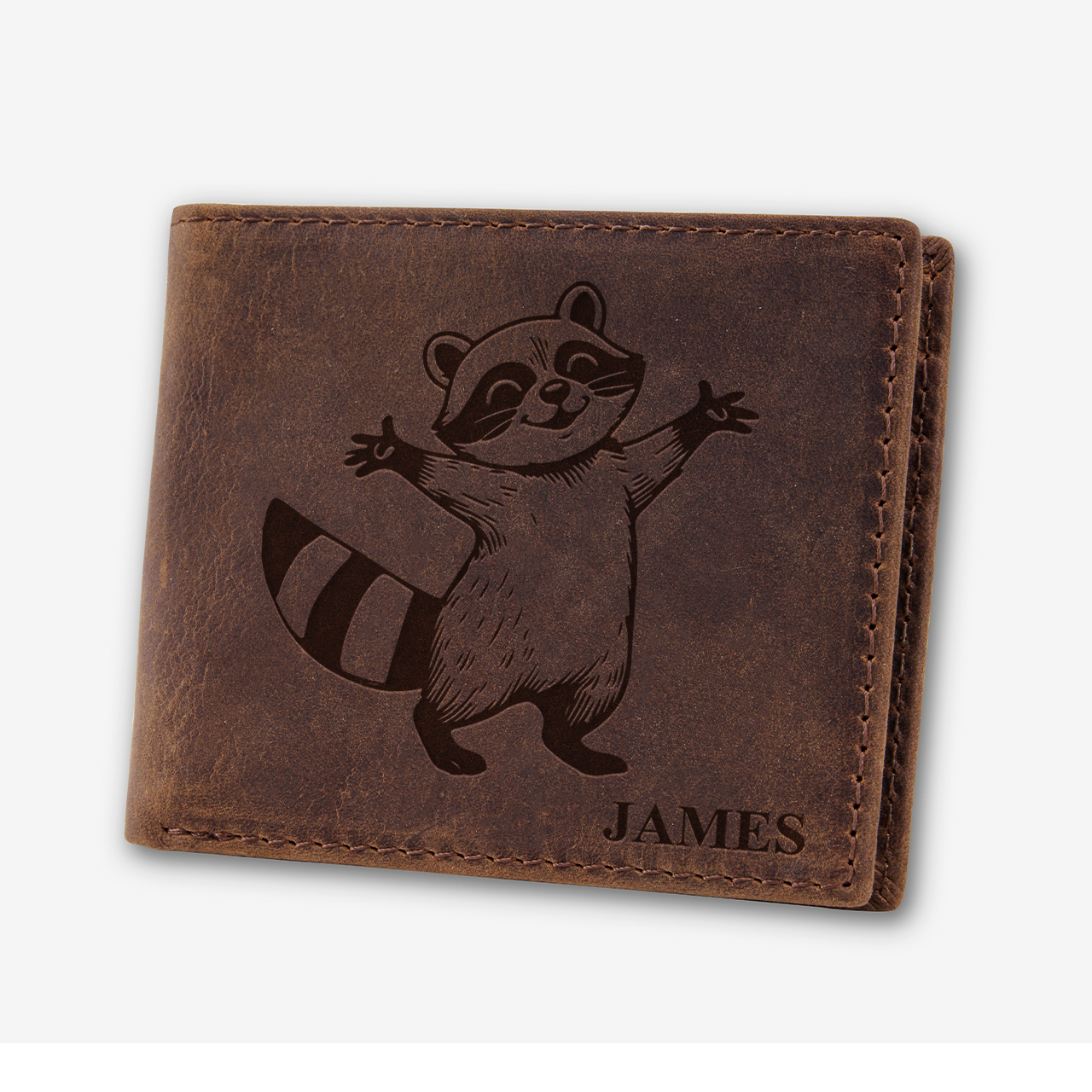 Personalized Vintage Leather Wallet_Raccoon