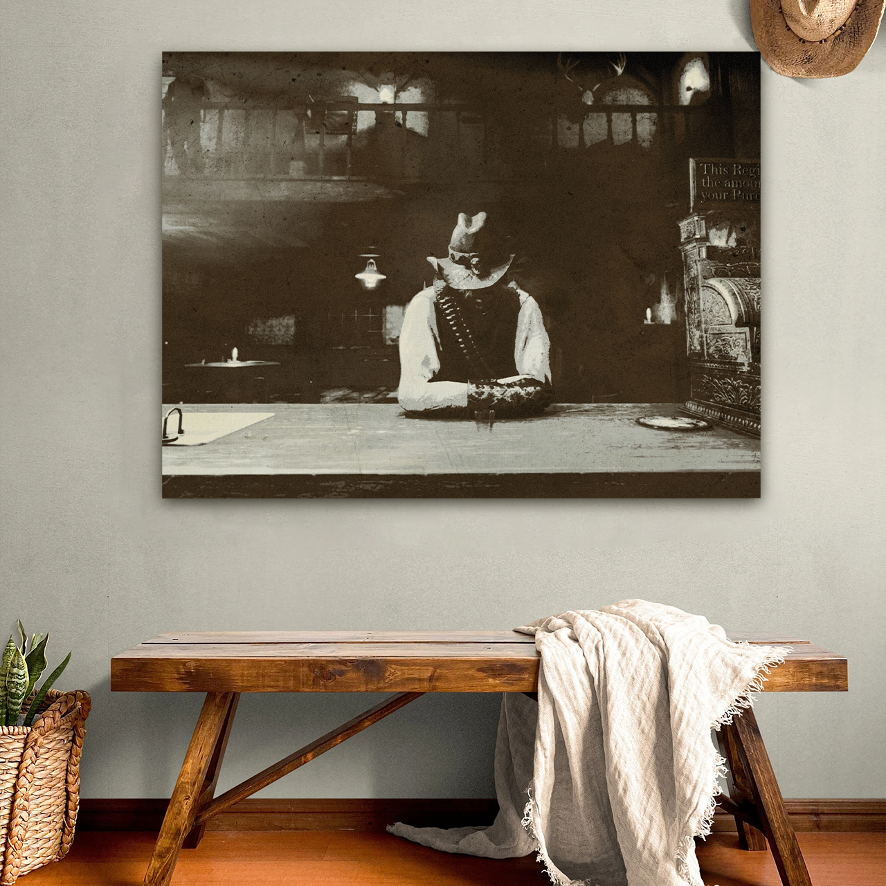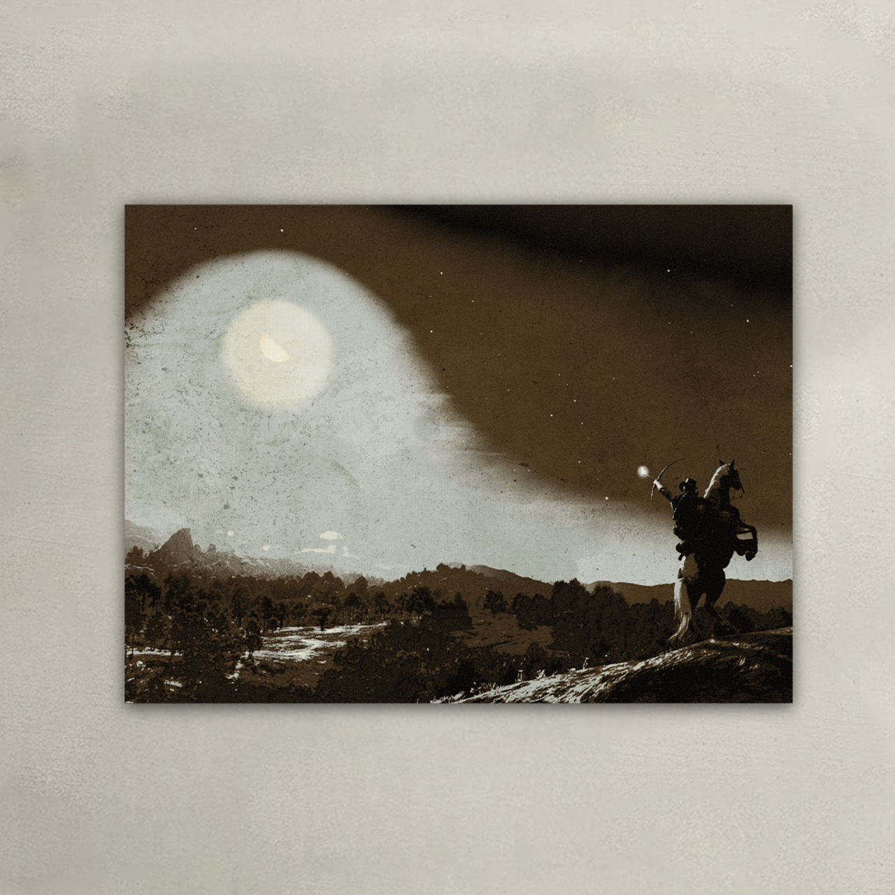 Brave Cowboy Destroys the Moon Canvas Wall Art