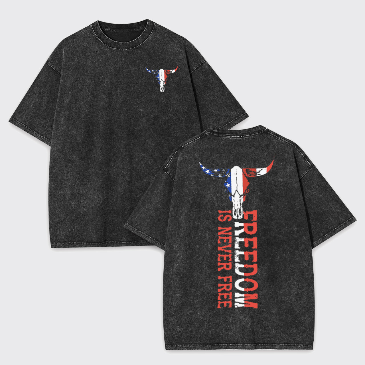 Skull Bull Wearing Hat Cowboy Garment-dye Tees