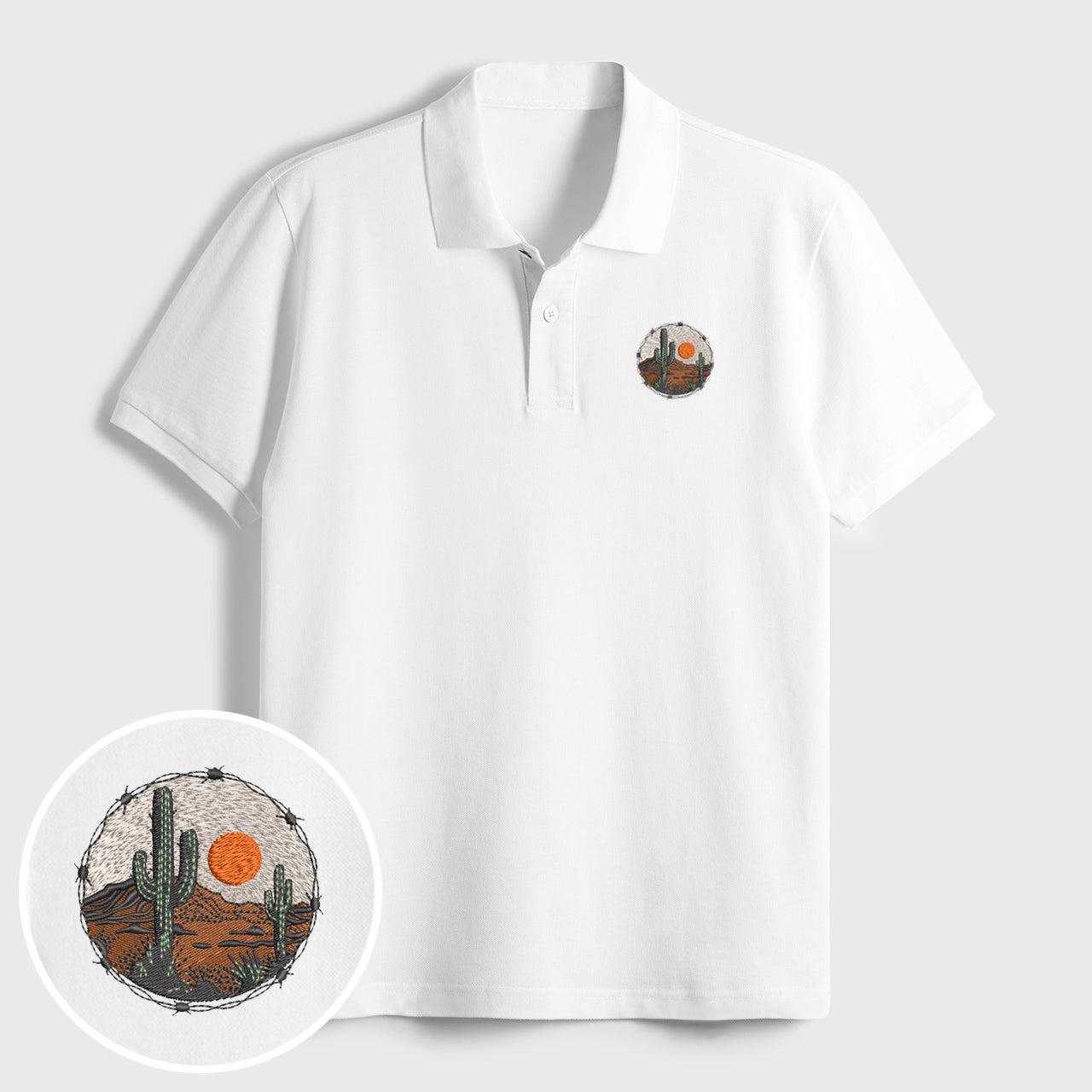 Western Desert Sunset Embroidered Polo Shirts