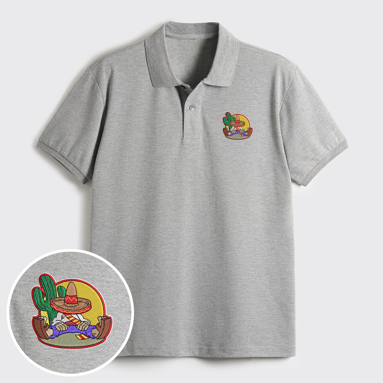 Man Sombrero Embroidered Polo Shirts
