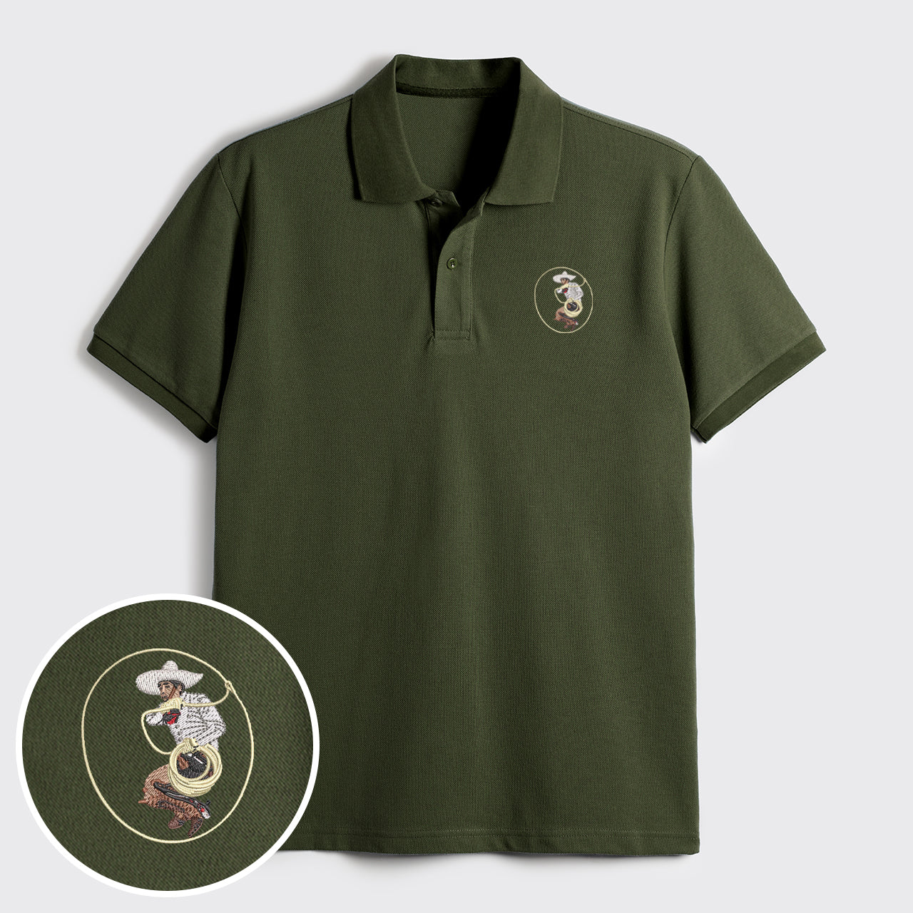 Charro with Lasso Embroidered Polo Shirts