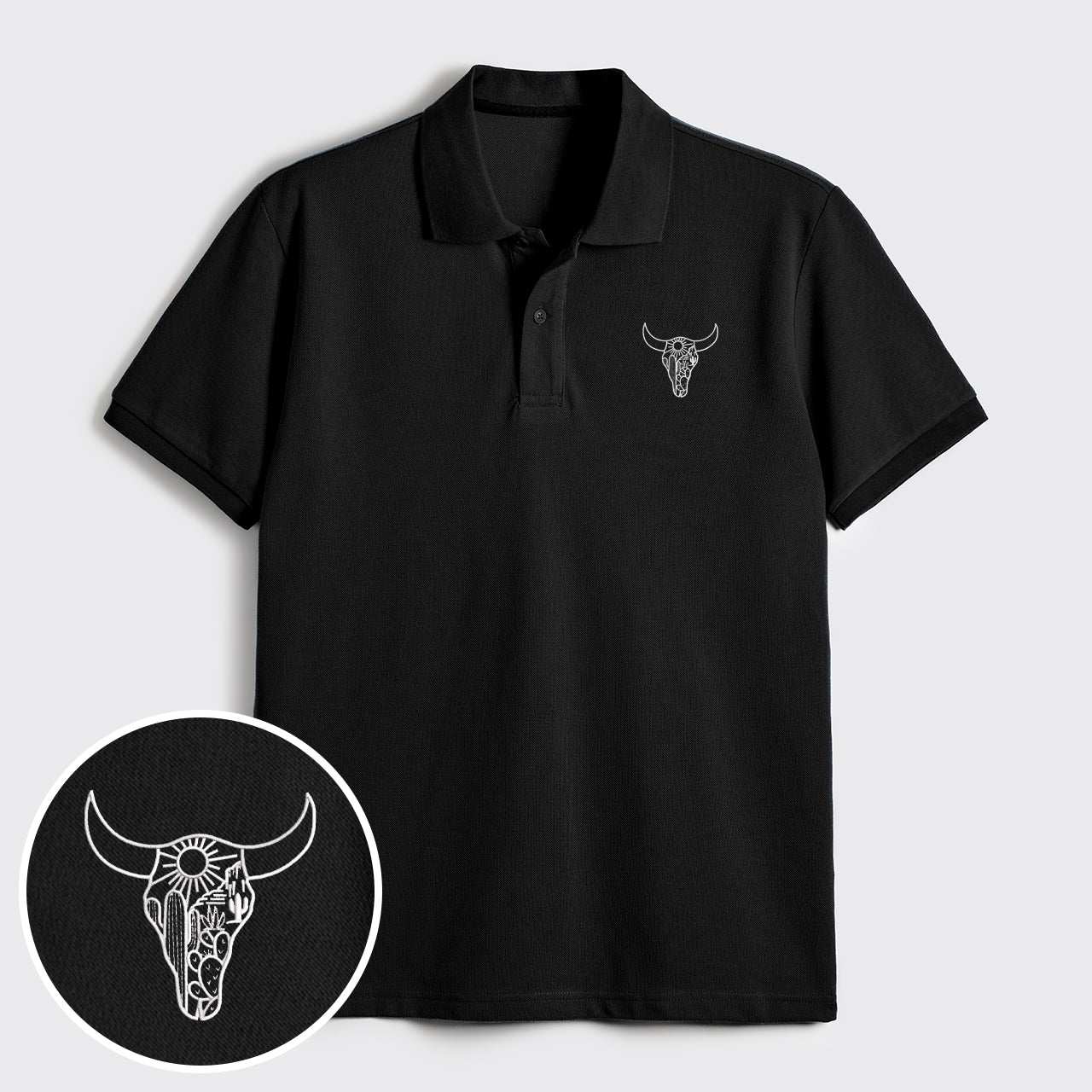 Western Bull Skull Machine Embroidered Polo Shirts