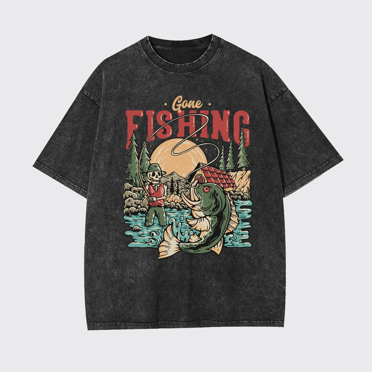 Funny Gone Fishing With Skeleton Garment-dye Tees